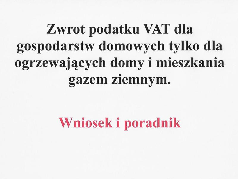 Zwrot podatku VAT dl gospodarstw domowych - tylko dla ogrzewających...
