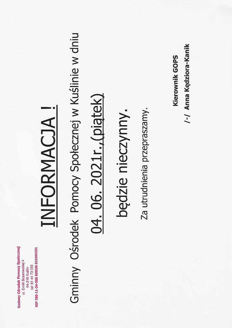 Gminny Ośrodek Pomocy Społecznej w Kuślinie w dniu