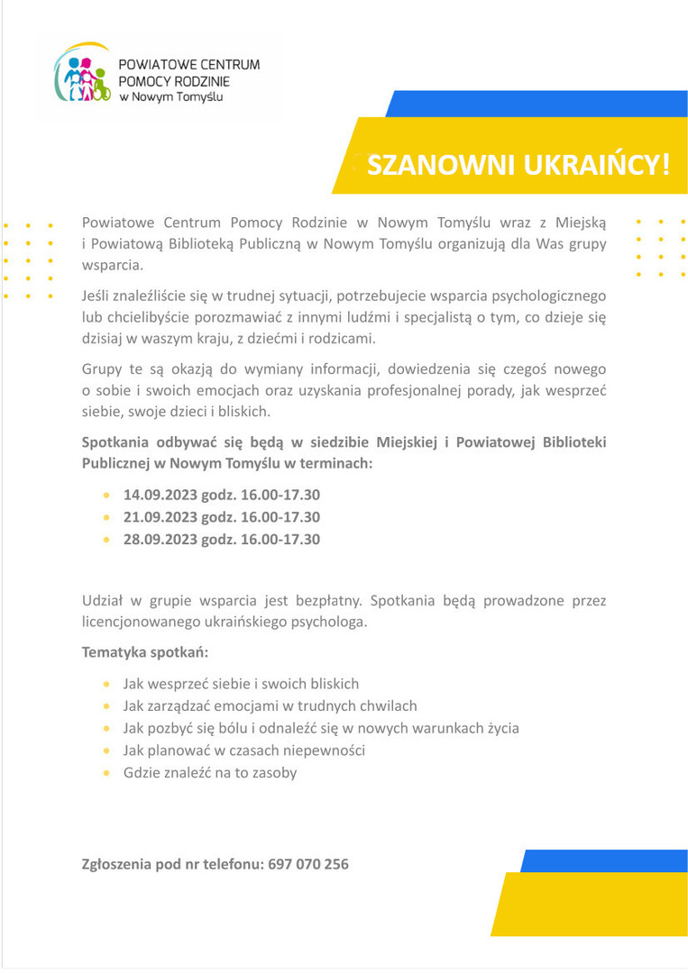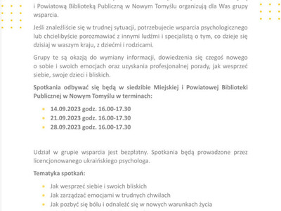 GRUPA WSPARCIA DLA OBYWATELI UKRAINY W NOWYM TOMYŚLU