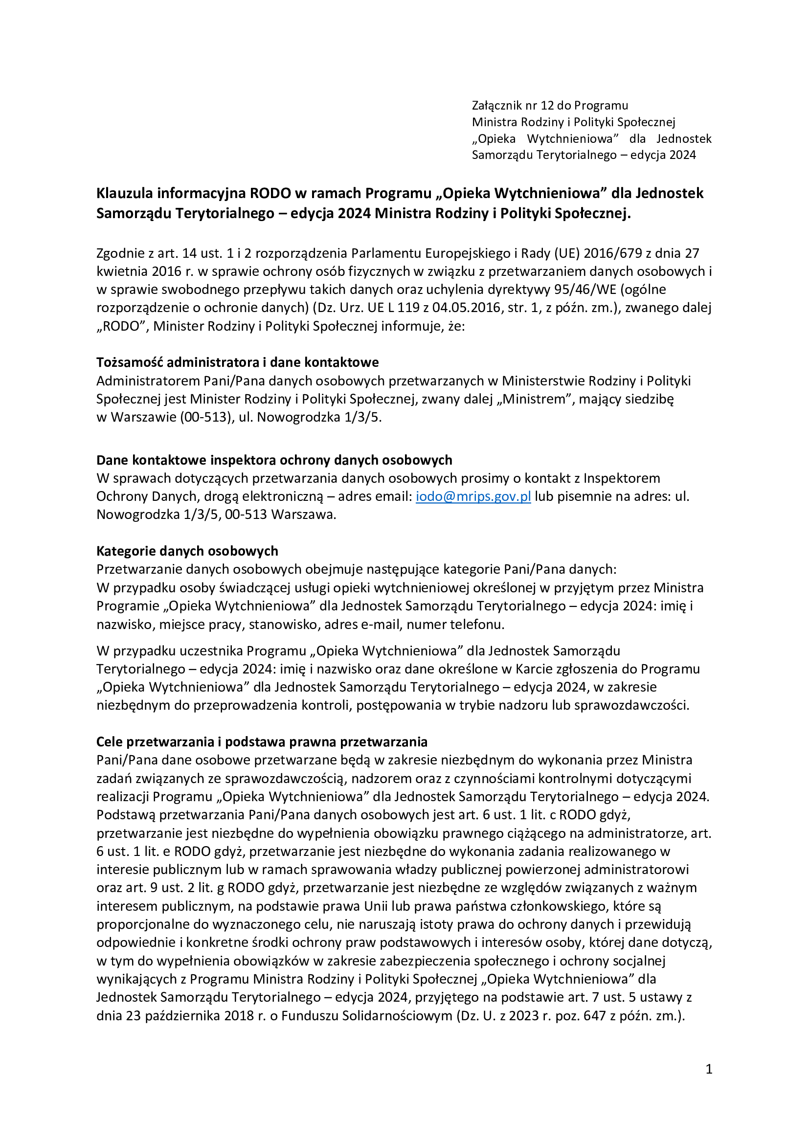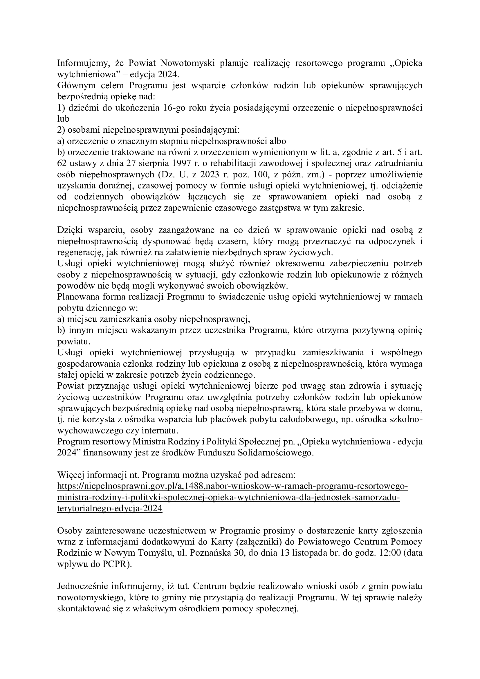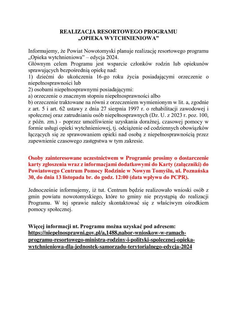 REALIZACJA RESORTOWEGO PROGRAMU "OPIEKA WYTCHNIENIOWA"