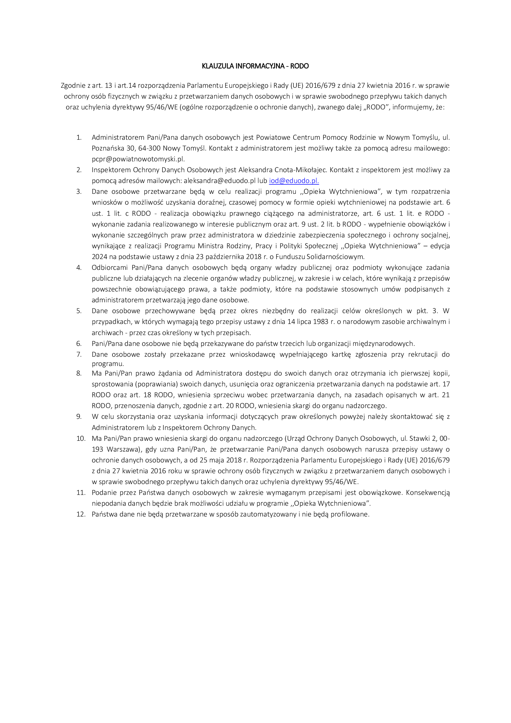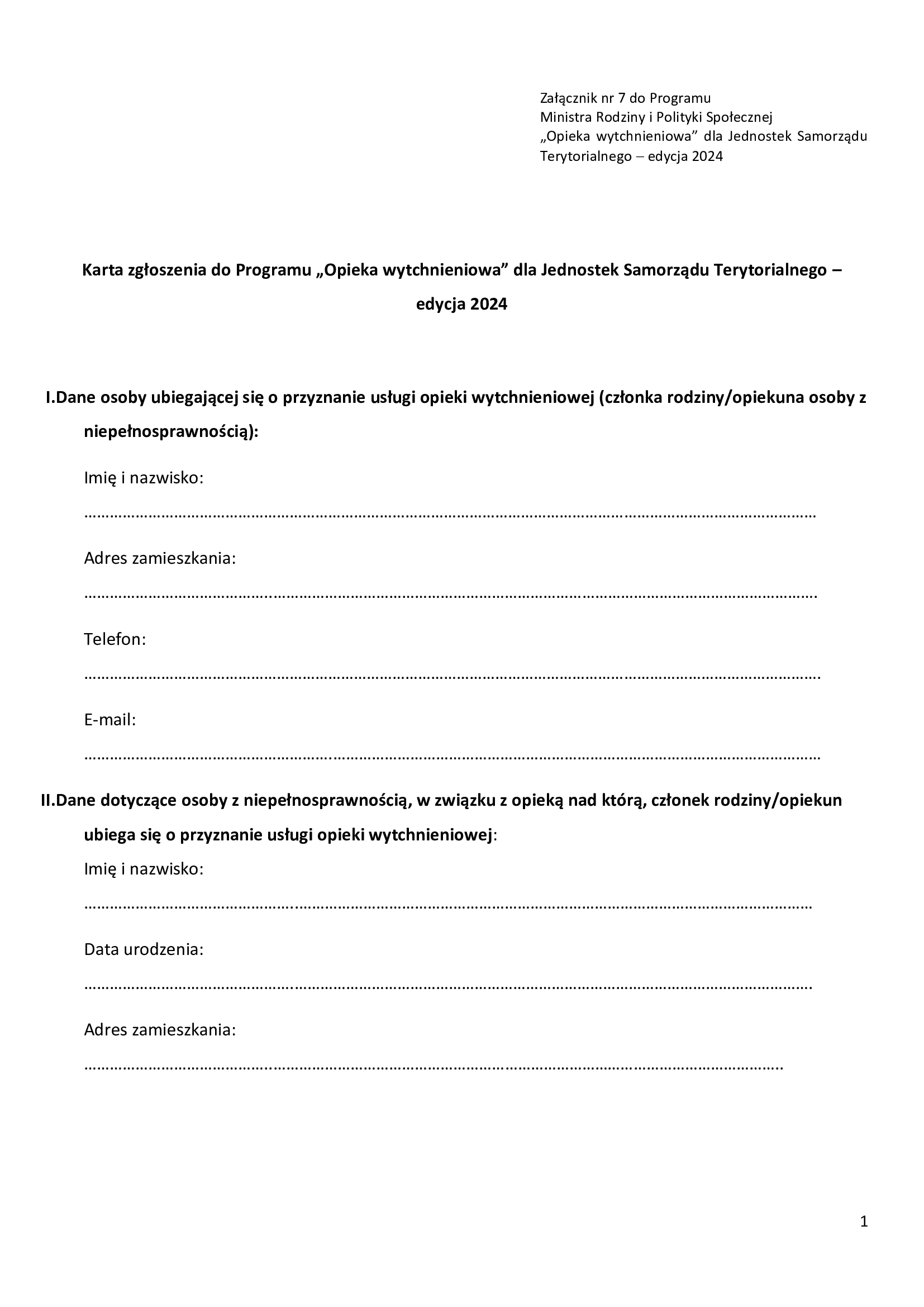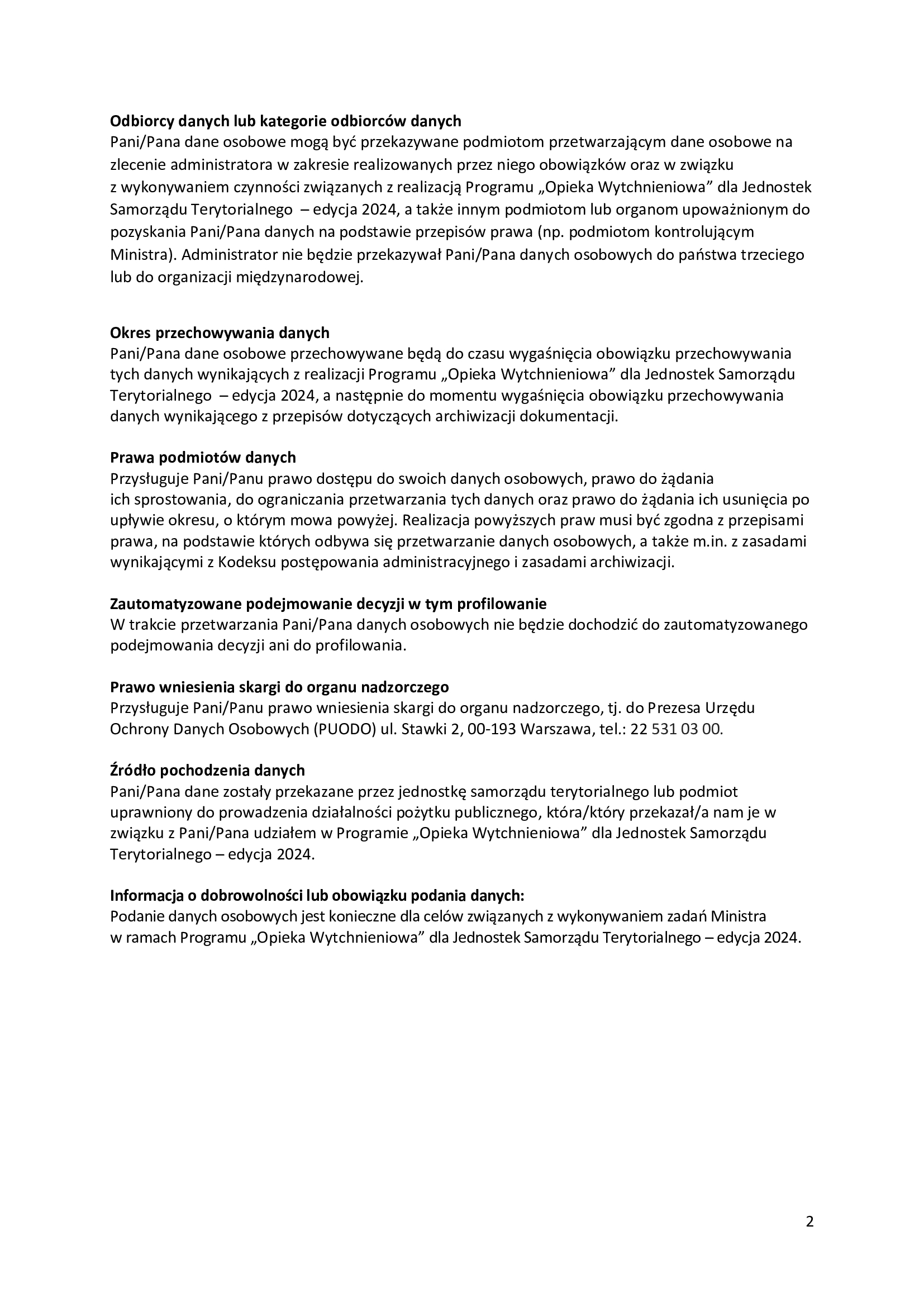REALIZACJA RESORTOWEGO PROGRAMU "OPIEKA WYTCHNIENIOWA"