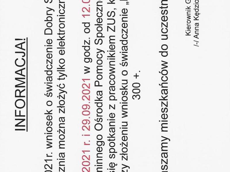 SPOTKANIE Z PRACOWNIKIEM ZUS ODNOŚNIE ŚWIADCZENIA "DOBRY START"...