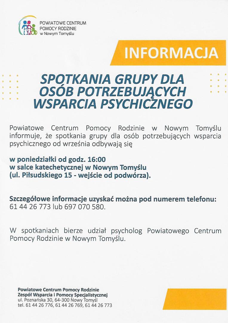 SPOTKANIA GRUPY DLA OSÓB POTRZEBUJĄCYCH...