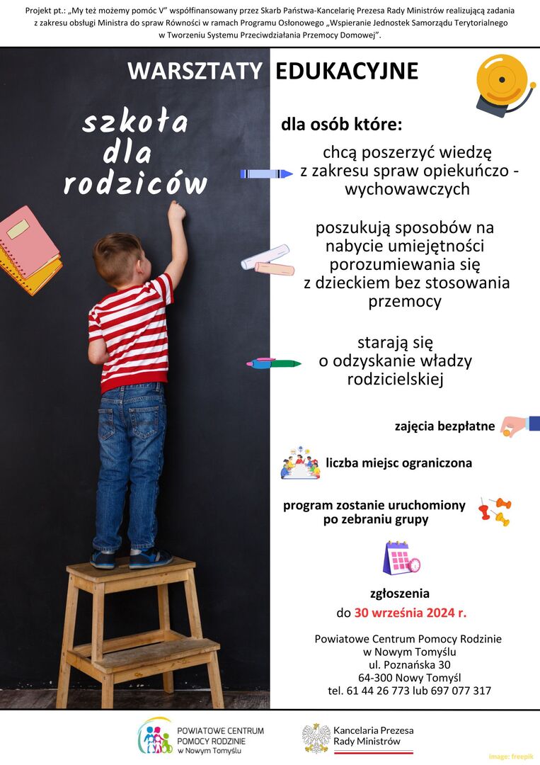 Powiatowe Centrum Pomocy Rodzinie w Nowym Tomyślu informuje, że planuje realizację warsztatów pn.: „Szkoła dla rodziców”.