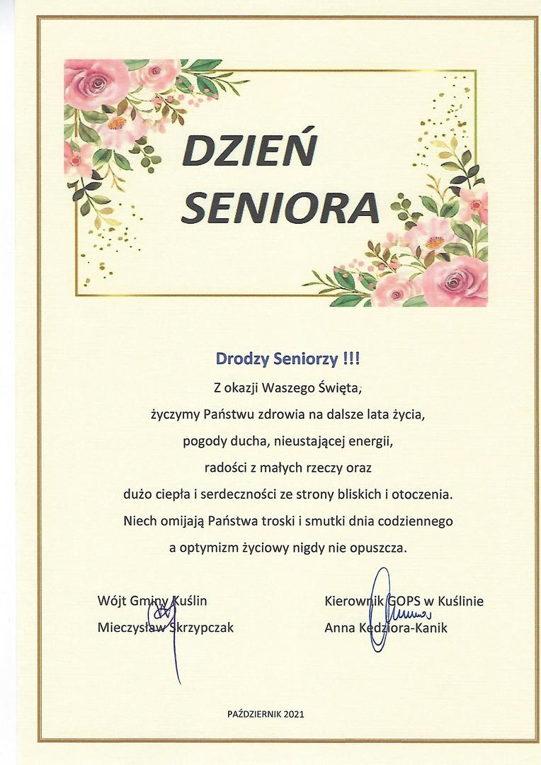 Życzenia Wójta Gminy Kuślin oraz Kierownika GOPS Kuślinie.