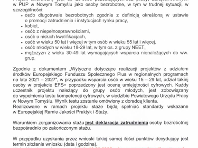 POWIATOWY URZĄD PRACY W NOWYM TOMYŚLU OGŁASZA NABÓR WNIOSKÓW...
