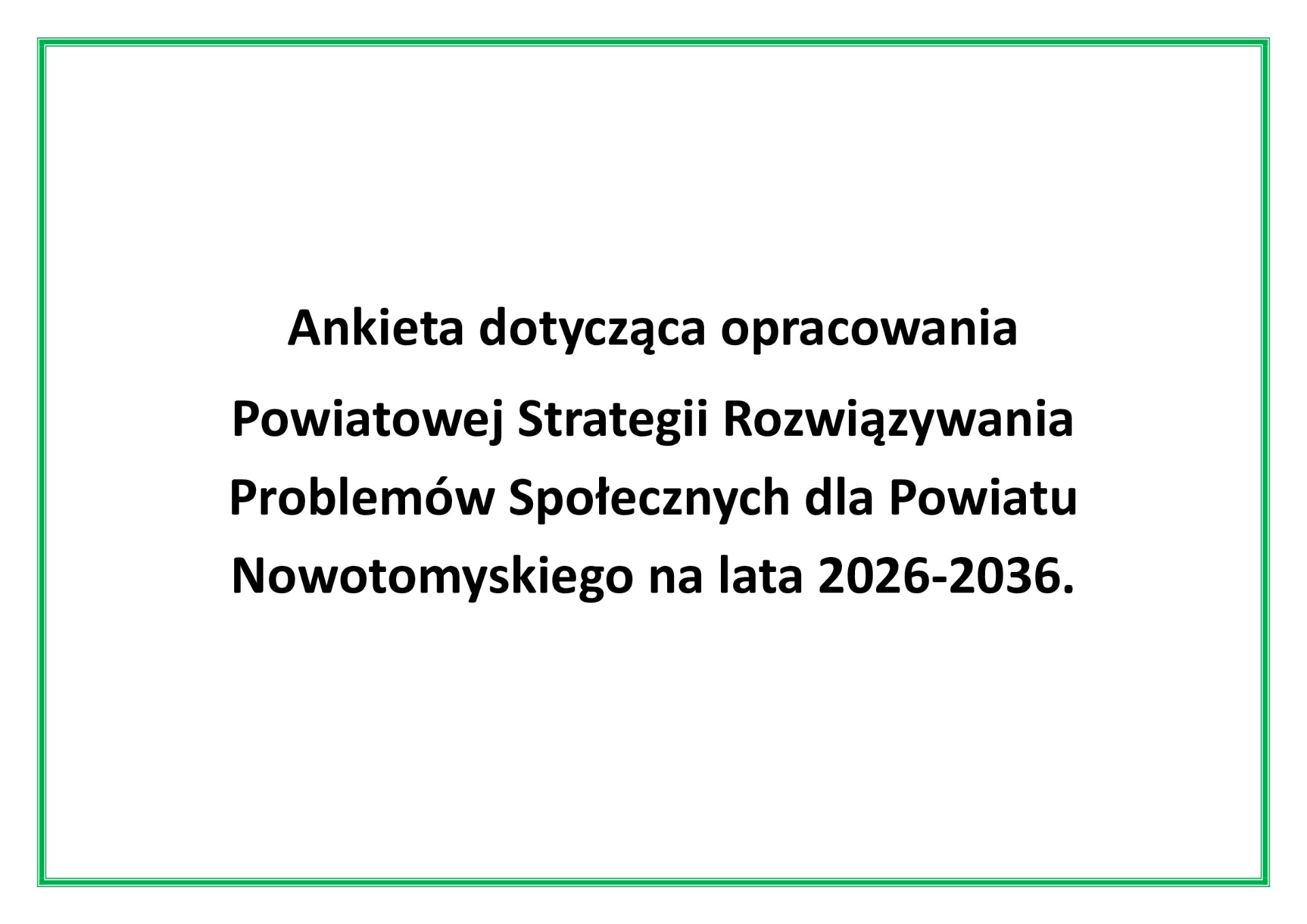 Ankieta dotycząca opracowania Powiatowej Strategii Rozwiązywania Problemów Społecznych dla Powiatu Nowotomyskiego na lata 2026-2036.
