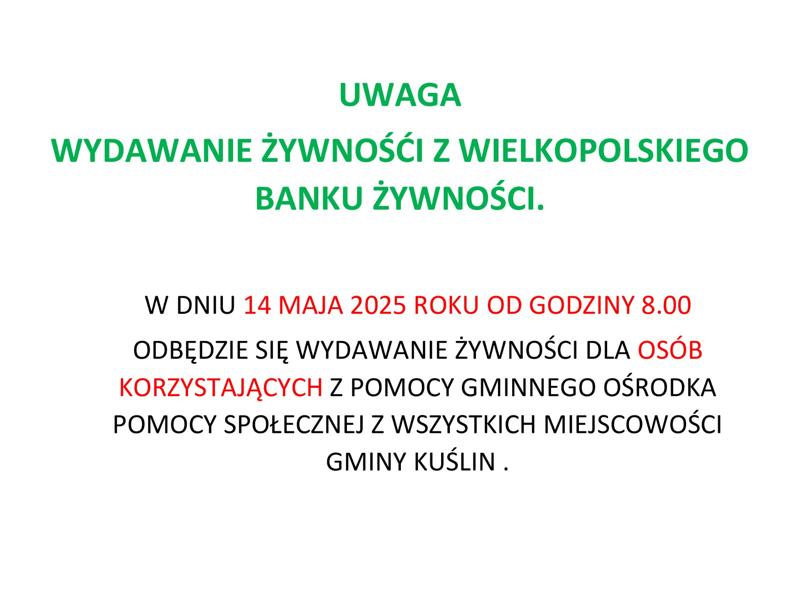 WYDAWANIE ŻYWNOŚCI Z BANKU ŻYWNOŚCI