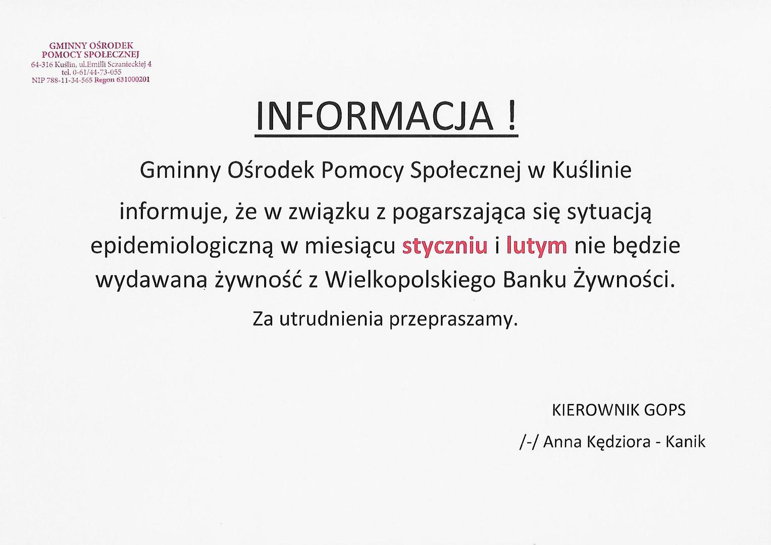 INFORMACJA WYDAWANIE ŻYWNOŚCI...