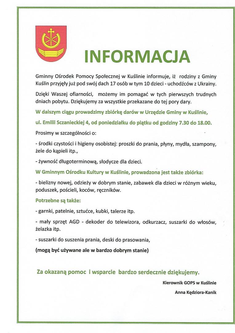 Uwaga. Informacja dla rodzin które przyjęły pod swój dach uchodźców...