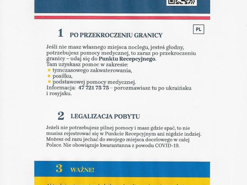 Ulotki informacyjne dla uchodźców wojennych z Ukrainy, którzy...