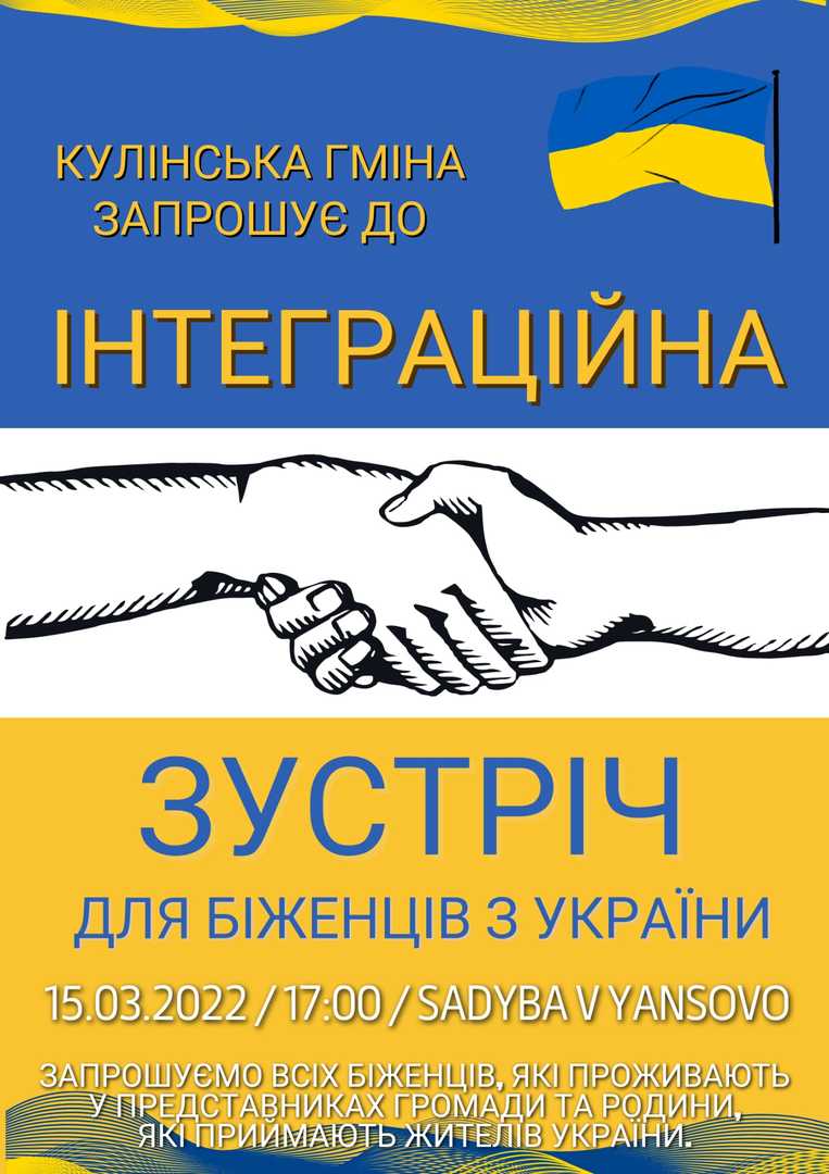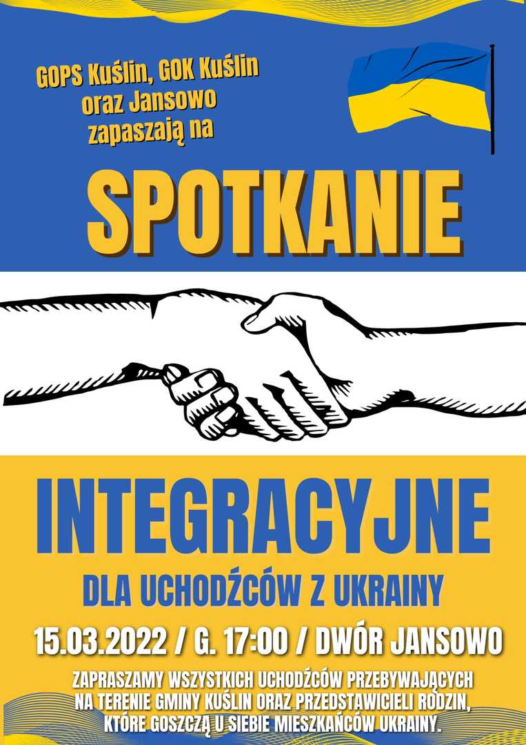 We wtorek, 15 marca 2022 roku o godzinie 17:00 w "Dworze Jansowo" odbyło się spotkanie integracyjne z nowo przybyłymi na teren gminy Kuślin obywatelami Ukrainy. Nie zawiodły całe władze samorządowe gminy - pracownicy Gminnego Ośrodka Pomocy Społecznej, Ośrodka Kultury, dyrektorzy placówek oświatowych, a nawet władze powiatu nowotomyskiego.