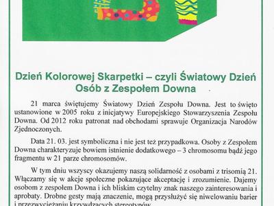 ŚWIATOWY DZIEŃ OSÓB Z ZESPOŁEM DOWNA - DZIEŃ KOLOROWEJ SKARPETKI