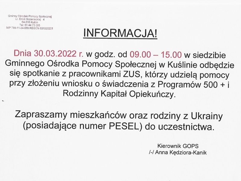 Rodzina z Ukrainy z wizytą w Urzędzie Gminy Kuślin. Pozdrawiamy...