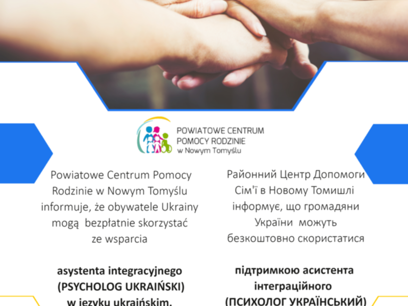BEZPŁATNE WSPARCIE ASYSTENTA INTEGRACYJNEGO DLA OBYWATELI UKRAINY