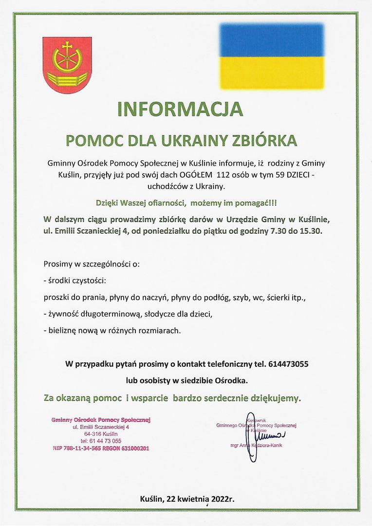 INFORMACJA POMOC DLA UKRAINY - ZBIÓRKA