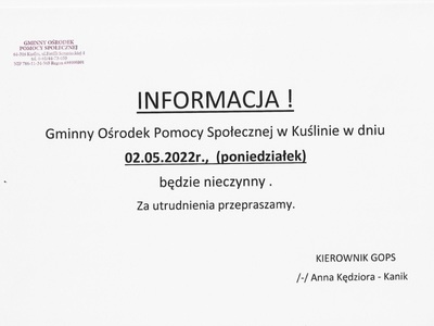 GMINNY OŚRODEK POMOCY W KUŚLINIE NIECZYNNY