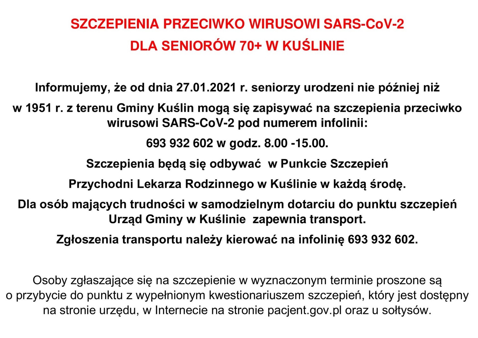 SZCZEPIENIA PRZECIWKO COVID-19 w Gminie Kuślin