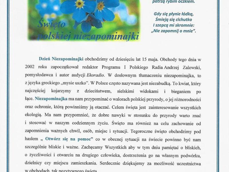 ŚWIĘTO POLSKIEJ NIEZAPOMINAJKI
