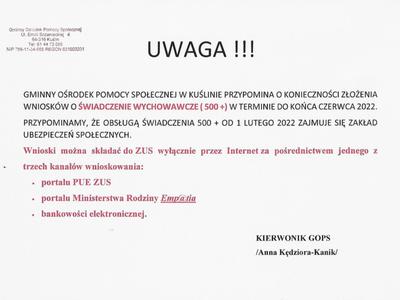 INFORMACJA DOTYCZĄCA ŚWIADCZENIA WYCHOWAWCZEGO ( 500 +)