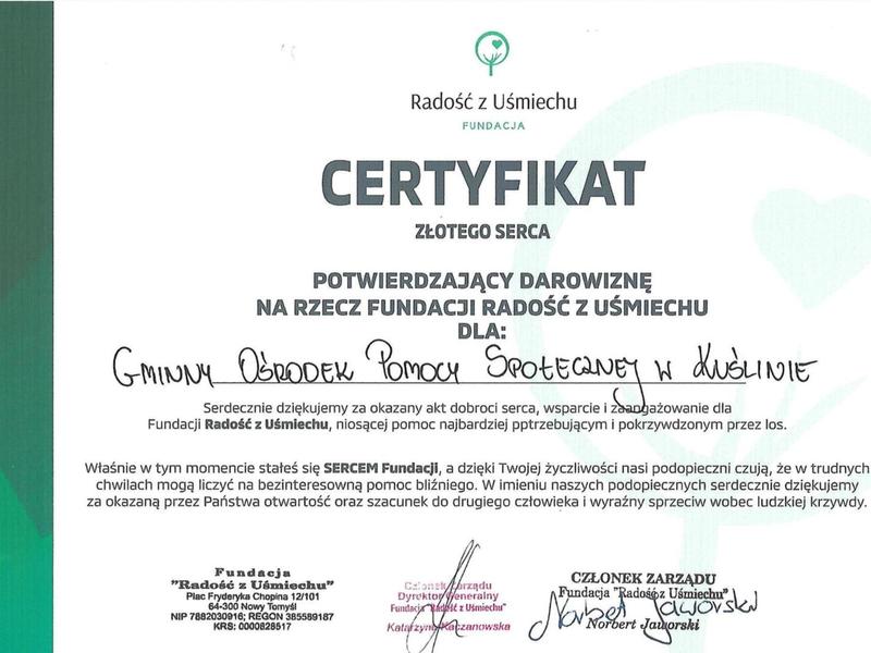 Podziękowania dla GOPS w Kuślinie