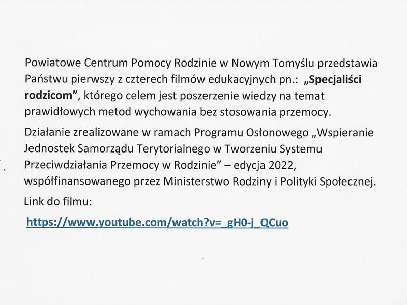 FILM EDUKACYJNY Z POWIATOWEGO CENTRUM POMCY RODZINIE