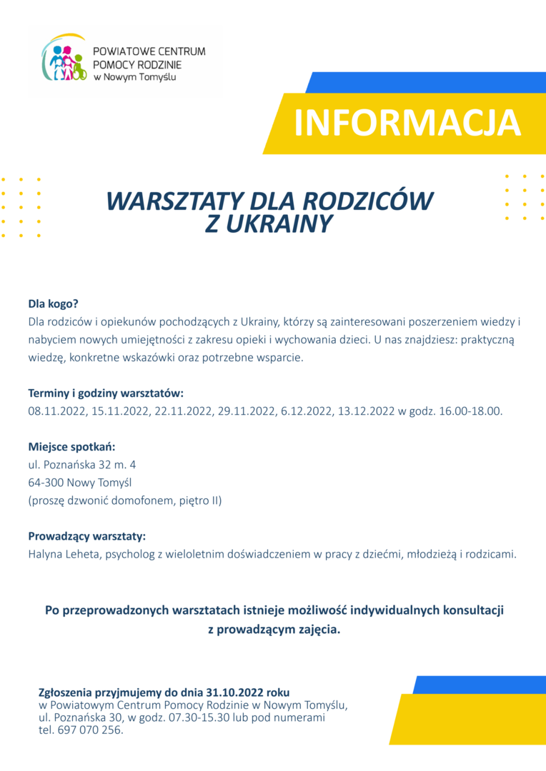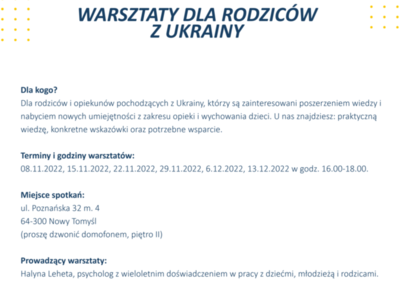 ZAPROSZENIE NA WARSZTATY EDUKACYJNE "SZKOŁA RODZICÓW"