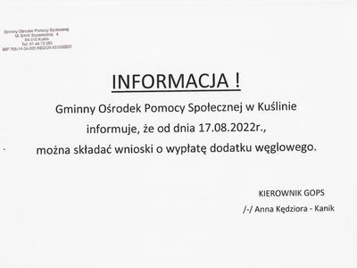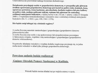 DODATEK WĘGLOWY W GMINIE KUŚLIN