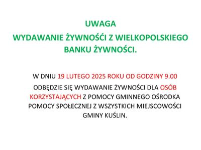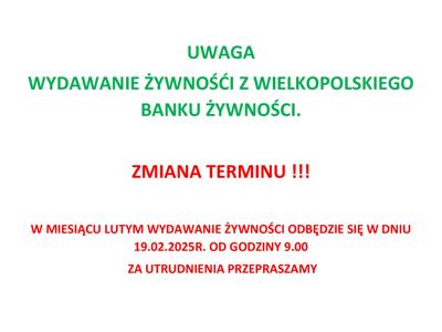 WYDAWANIE ŻYWNOŚCI ZMIANA TERMINU