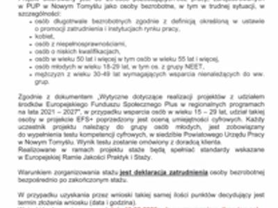 POWIATOWY URZĄD PRACY W NOWYM TOMYŚLU OGŁASZA NABÓR WNIOSKÓW...