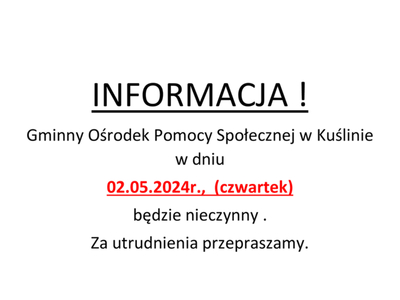 W dniu 29.03.2024 r., (Piątek) Gminny Ośrodek Pomocy Społecznej...